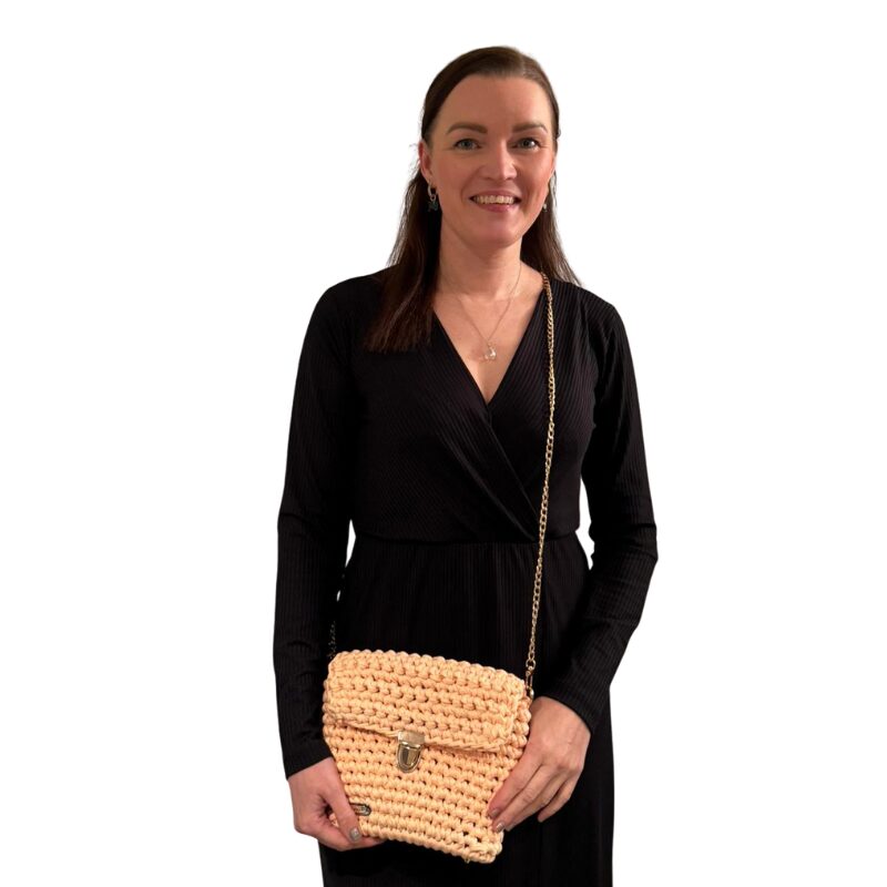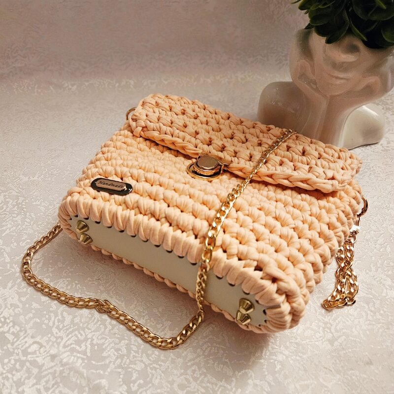 Heegeldatud käekott, millele lisavad elegantsi kuldset värvi detailid, on stiilne ja praktiline aksessuaar. Ideaalne kaaslane nii pidulikel üritustel kui ka igapäevaseks kasutamiseks.